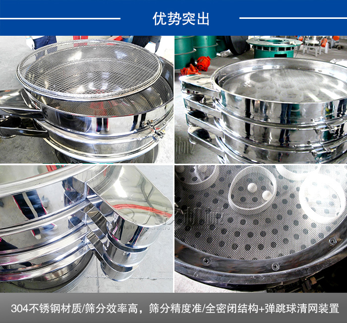 3、全密閉結(jié)構(gòu)+彈跳球清網(wǎng)裝置,網(wǎng)孔不堵塞、粉末不飛揚(yáng)。