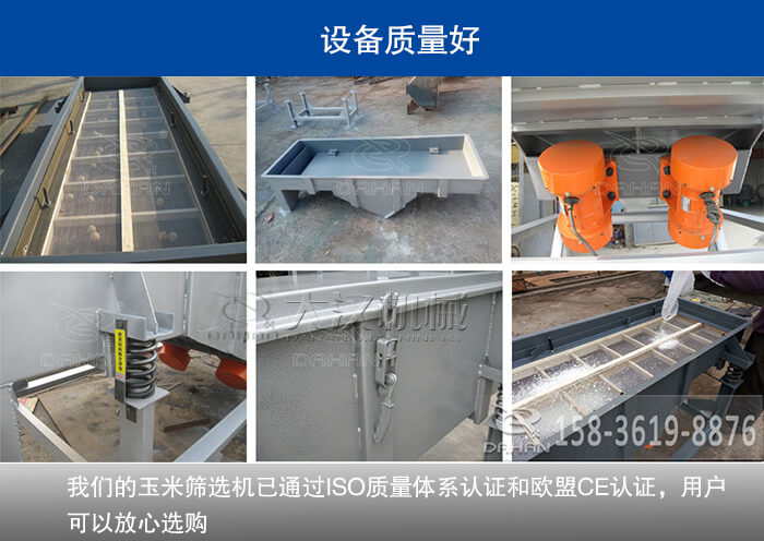 在玉米篩選機(jī)選材開始,到設(shè)備送到用戶手中為止,我們將高品質(zhì)滲透在每一個(gè)細(xì)節(jié)內(nèi),一直致力于把好的設(shè)備和好的施工工藝介紹給用戶,保證用戶利益大化,我們的玉米篩選機(jī)選用厚度在10-12mm之間的板材,設(shè)備生產(chǎn)過程中優(yōu)嚴(yán)格的質(zhì)量管理,能夠極大地提高設(shè)備的品質(zhì),穩(wěn)定設(shè)備的性能,目前,我們的玉米篩選機(jī)已通過ISO質(zhì)量體系認(rèn)證和歐盟CE認(rèn)證,用戶可以放心選購。