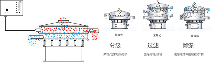 在篩箱的振動作用下,物料在篩面上產生螺旋狀運動。較大的物料被離心力推向篩箱的外側,而較小的物料則逐漸通過篩孔,落入下方的出料口。篩孔的大小可以根據物料的要求進行選擇,以實現不同粒徑的篩分和分級。